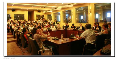Ann Bertier 女士在欧盟从事过多年的英-荷口译实践工作,现在主要负责欧盟各合作高校翻译学院口译教学及培训联络工作。Bertier女士向同学们简要介绍了欧盟口译司的主要职责和工作特点,强调指出欧盟口译员必须具备高质量口译水准。接着,她用自己的亲身经历告诉学生作为一名合格的口译工作者必须具备的基本条件:首先,语言准备,要有扎实的母语及目的语的应用能力;其次,关注时事,随时关注国际社会热点问题;再次,充足的背景知识储备;最后,传神达意,专业口译员必须准确传达说话者的意图而非词对词的死译。