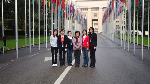 实习同学与张爱玲老师在联合国日内瓦万国宫合影