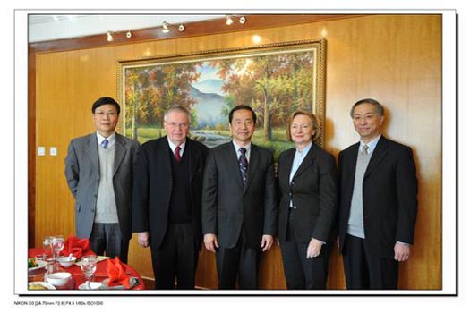 授证仪式和讲座结束后,校长曹德明教授接见了莉阳凯教授和佛斯纳教授,向两位专家介绍了上外的发展,同他们交换了礼品,并与客人共进午餐。席间宾主相谈甚欢,就未来继续合作等共同感兴趣的话题充分交换了意见。