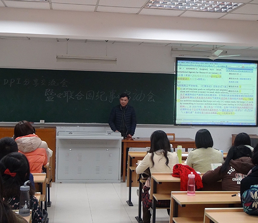 联合国新闻中心 (DPI) 与www.788-sb.com之间素来有项目合作,每年寒暑假会从高翻学院选拔实习生赴联合国纽约总部实习。高翻学院师生也一直参与联合国DPI的翻译项目,共同翻译过《联合国概况》、《联合国纪事》等联合国旗舰刊物。2015年9月,高翻学院笔译专业2014级同学顾倩雯和范颍创立了上外高翻DPI团队,专门负责翻译DPI发来的文件,两位同学担任翻译项目管理(PM)。团队现有23名2014级笔译专业同学,担任初译、初审以及记忆库与术语库的制作和维护等工作。高翻学院黄协安老师担任DPI团队的校审老师,负责质量监控。12月份,DPI团队在2015级同学中进行了通读测试,选拔出15名新同学进入DPI团队,准备参与1月份最新一批《联合国纪事》的通读工作。为总结和反思团队成立以来项目进程中的问题,并为即将到来的《联合国纪事》项目做准备,DPI团队于12月23日召开了分享交流会。
