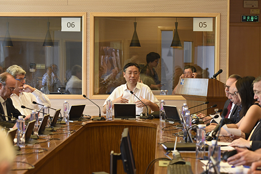 2016年7月29日上午,在德国驻上海总领事罗腾先生及上外党委书记姜锋博士的陪同下,北约议员大会主席卡尔拉莫斯先生带领的访华代表团莅临上外虹口校区2号楼高级翻译学院4楼模拟会议室举办北约--上外学者对话会,高翻学院为本次对话会提供了包括同声传译在内的会议服务。