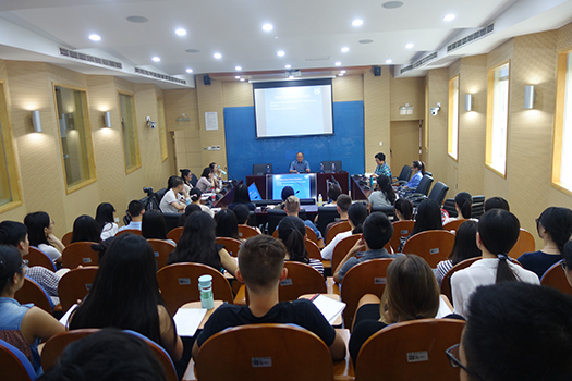 李正仁司长首先向同学们介绍了联合国的基本情况,包括历史沿革、机构组成、办事处、预算安排、岗位职称和薪资待遇。之后,李司长以自己所在的大会和会议管理部(DGACM)为例,详细介绍了联合国语言工作的不同岗位、职责;中文翻译所占的比例;联合国招聘语言人才的考核流程以及各种实习项目。讲座最后,他还为同学们提供了丰富的练习材料。 同时,李司长也提到,由于上外高翻学院和联合国签有合作备忘录,大大简化了高翻毕业生到联合国就业的流程。这一殊荣是对高级翻译学院培养人才质量的高度肯定。问答环节中,同学们就联合国口译员的工作量、职业生涯规划等问题踊跃提问。李正仁先生结合自己在联合国工作的所见所闻,一一耐心回答。他鼓励同学们好好学习,提高自身业务水平,国际组织对优秀口译员有很大需求。