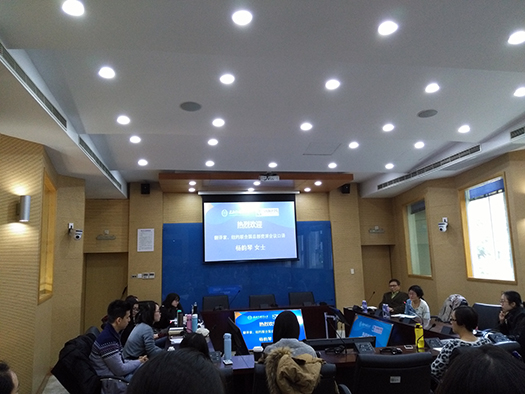 杨老师谨慎究学的态度在整场讲座中得到了充分展现。在联合国口译工作之余,杨老师还与先生美国贝兹大学教授杨曙辉合译了一些作品,包括三言二拍中的“三言”(《喻世明言》、《警世通言》、《醒世恒言》)等古典文学。杨老师和同学们分享了古典文学中笔译的点滴,认为会议口译要求速度,而笔译则有推敲的乐趣,笔译中字典就是她常备手边的工具,每每需要她都会谨慎地阅读完全部释义再选择最洽当的一条。