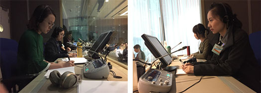 4月6日,同学们在Paul 4月7日早上,同学们在欧盟口译司与合作高校年度会议上做了同传训练,会议讨论了会议口译的培养、职业现状及未来发展前景,并探讨了远程同传的可能性。联合国日内瓦总部口译总司司长、上外特聘教授李正仁、上外高翻学院院长张爱玲、副院长戴惠萍也出席了本次会议。会议讨论热烈,同学们对英文箱译员的高语言质量和职业精神印象深刻。下午2点半,欧盟口译司的Paul BRENNAN老师对同学们的一周表现做了点评和总结,指出中式英语的问题,强调译员自我监听的重要性。晚上,欧盟官员为三所高校的师生举办了告别晚宴。