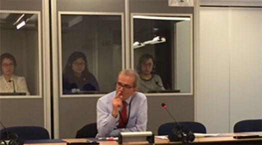 4月4日一早,欧盟对外事务部(EU External Action Service)Christophe MANET先生就欧盟中国关系专题进行演讲,介绍了欧盟和中国在经济、贸易、政治等方面的重要合作,并在演讲最后回答了关于欧盟安全、人权、中国市场经济地位等问题。随后,Andy UPTON老师对实习学生进行了时态的专项训练,他强调英文时间锚点(time anchor)的重要性,通过三篇演讲的英中交替传译练习,训练过去、现在和未来的时间锚点。随后学生通过中译英的同传训练,进一步巩固了时间锚点的知识要点。Andy UPTON老师的演示生动活泼,富有激情,训练结束时,同学们纷纷表示,时间锚点对于英文时态的准确使用有很大的帮助。4月4日下午,同学们访问了欧洲经济与社会委员会(European Economic and Social Committee),并做了模拟同传的训练。