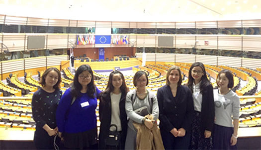 2017年4月3日至7日,2015级5名会议口译专业学生由高翻学院王吟颖老师带队前往布鲁塞尔欧盟总部实习。欧盟委员会口译总司对此次实习高度重视,以欧盟口译总司中国项目主任Paul BRENNAN先生领先的资深译员、口译培训专家Andy UPTON先生、Kunteel BARUA先生和David SMITH先生为高翻学生授课,并安排学生访问了欧洲议会、欧盟委员会、欧洲经济与社会委员会和欧盟部长理事会,内容充实,学生受益匪浅。