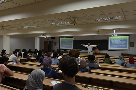 讲座的最后,戴惠萍副院长就阿拉伯世界逊尼派与什叶派之争、伊斯兰文明与其他文明相互作用和相互影响的问题与郭教授进行了讨论。讲座结束之后,一些老师和同学还就学术问题纷纷向郭老师请教。整场讲座气氛活跃,仅仅一个半小时的讲座,郭教授就向我们展示了他对伊斯兰文化的深入研究与思考,同学们受益匪浅。来听讲座的不仅有阿拉伯语口译专业的师生,同样还有我院英语口译及其他小语种口译专业的教师及学生。可以说这场讲座为我们打开了了解伊斯兰世界的窗口。不仅为同学们以后的翻译工作提供了重要的背景知识,更能帮助我们更好地理解目前我们所处的多变而纷乱的世界。