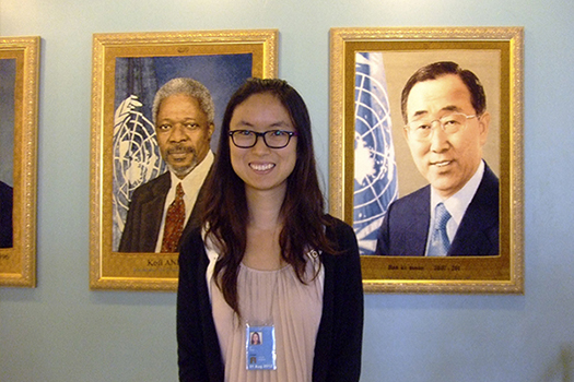 2012年暑假,高级翻译学院2011级英语笔译专业的李铄曾前往联合国纽约总部进行实习。令李铄印象深刻的不仅是专业能力的锻炼与提高,还有联合国提供的国际眼光,使她更透彻地了解当前的全球性问题和文化差异。