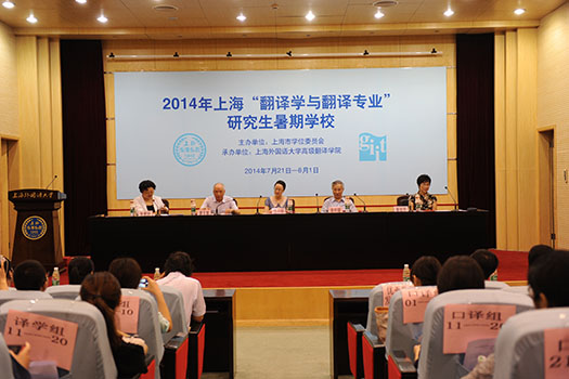 2014上海“翻译学与翻译专业”研究生暑期学校毕业典礼于2014年8月1日上午在校第一报告厅举行,研究生部主任汪小玲教授、副主任肖琳老师,高级翻译学院荣誉院长柴明熲教授、院长张爱玲教授、原译研所所长谢天振教授、加拿大籍笔译专家姚锦清教授、前任行政副院长姜如芳老师,以及研究生部和高翻学院其他老师等出席了毕业典礼。毕业典礼由张爱玲教授主持。