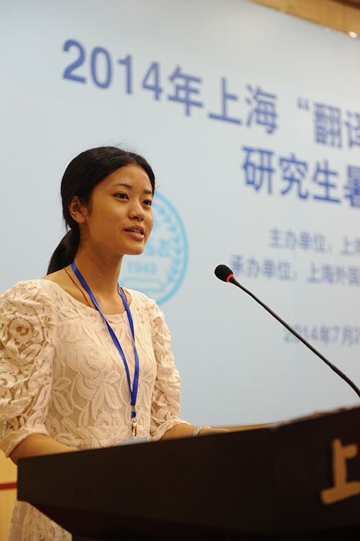 最后一名学员代表是浙江大学的金荔,代表译学组发言。金荔同学感叹时光飞逝,随着暑期学校的结束,内心有满足,有感恩,更有不舍。十几天来,同学们领略了高翻学院的学术氛围、教学特色和名师风采,课程形式多样,内容翔实,让人获益良多。学习过程中,大家对翻译学和翻译研究有了正确的认识,纠正了之前的误区,了解到翻译理论除了指导实践外,还能认识实践。对上海文化贸易语言服务基地的考察让学员们见识到了翻译职业化的先进理念和光明前景,并再一次证实了国际接轨的重要性。本次暑期学校中,金荔同学更是得到了老师们的肯定和支持,坚定了自己的研究方向,收获颇丰。