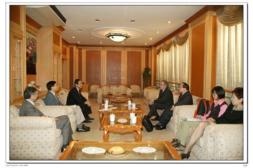 随后,曹德明校长代表学校会见了戈拉切夫一行,双方进行了轻松愉快的交谈。曹德明校长向客人介绍了我校的发展和近年来与国际合作的丰硕成果。戈拉切夫则介绍了联合国加强与国际知名大学合作的发展设想,并盛赞上海外国语大学的国际化教学培养模式。戈拉切夫和曹德明校长分别代表联合国日内瓦办事处与上海外国语大学续签了口译领域合作备忘录,还商讨了开拓笔译领域的进一步合作计划。